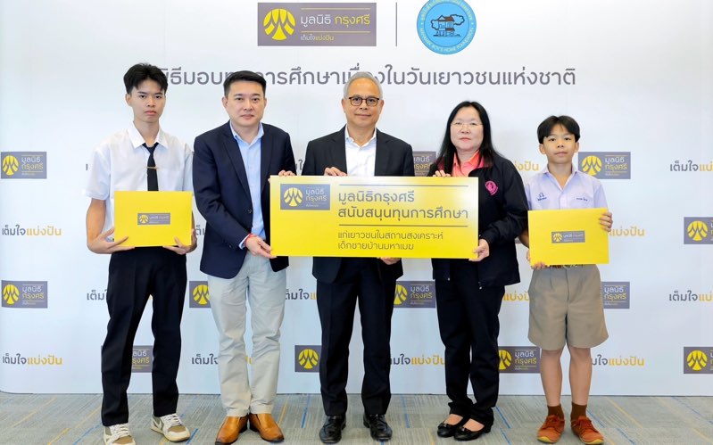 กรุงเทพฯ (25 กันยายน 2568) – มูลนิธิกรุงศรี โดย นายไพโรจน์ ชื่นครุฑ(กลาง) ประธานคณะเจ้าหน้าที่ด้านกลยุทธ์และวางแผนธุรกิจองค์กร ธนาคารกรุงศรีอยุธยา จํากัด (มหาชน)ในฐานะผู้แทนมูลนิธิกรุงศรี มอบทุนการศึกษาจํานวน 110,000 บาท แก่เยาวชนที่มีผลการเรียนและความประพฤติดีในความดูแลของสถานสงเคราะห์เด็กชายบ้านมหาเมฆ เนื่องในโอกาสวันเยาวชนแห่งชาติ ประจําปี 2568 ณ อาคารริมน้ำ สำนักงานใหญ่ กรุงศรี ทั้งนี้ มูลนิธิกรุงศรีได้มอบทุนการศึกษาเพื่อสร้างโอกาสทางการศึกษาแก่เยาวชนจากสถานสงเคราะห์เด็กชายบ้านมหาเมฆมาอย่างต่อเนื่องเป็นปีที่ 8 โดยมีเยาวชนได้รับทุนการศึกษาทั้งสิ้น 120 ทุน