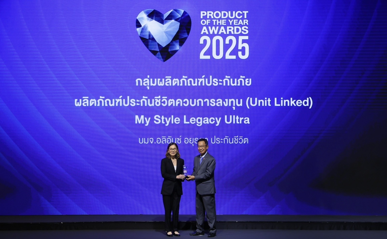 นางสาวพบพร พิพัฒน์สาธุกิจ ผู้อำนวยการอาวุโส ฝ่ายธุรกิจยูนิต ลิงค์ บมจ. อลิอันซ์ อยุธยา ประกันชีวิต รับรางวัล BUSINESS+ PRODUCT OF THE YEAR AWARDS 2025 กลุ่มผลิตภัณฑ์ประกันภัย ประเภทประกันชีวิตควบการลงทุน (Unit Linked) My Style Legacy ULTRA ที่ออกแบบเฉพาะเพื่อตอบโจทย์กลุ่มลูกค้าไฮเน็ตเวิร์ธ วางแผนการส่งต่อความมั่งคั่งและความมั่นคงให้คนที่รักอย่างมีประสิทธิภาพ ความคุ้มครองชีวิตเริ่มต้นที่ 10 ล้านบาท และสามารถเพิ่มโอกาสรับผลตอบแทนสูงขึ้นผ่านการ Top-Up วางแผนได้ตามเป้าหมาย มีความยืดหยุ่นในปรับเพิ่มลดความคุ้มครองชีวิต เป็นอีกหนึ่งแผนประกันจาก Ultra series ที่ได้รับเสียงตอบรับที่ดีอย่างมาก โดยได้รับเกียรติจาก ฯพณฯ นุรักษ์ มาประณีต องคมนตรี เป็นประธานมอบรางวัล ณ ห้องบอลรูม โรงแรมสวิสโฮเต็ล กรุงเทพฯ รัชดา