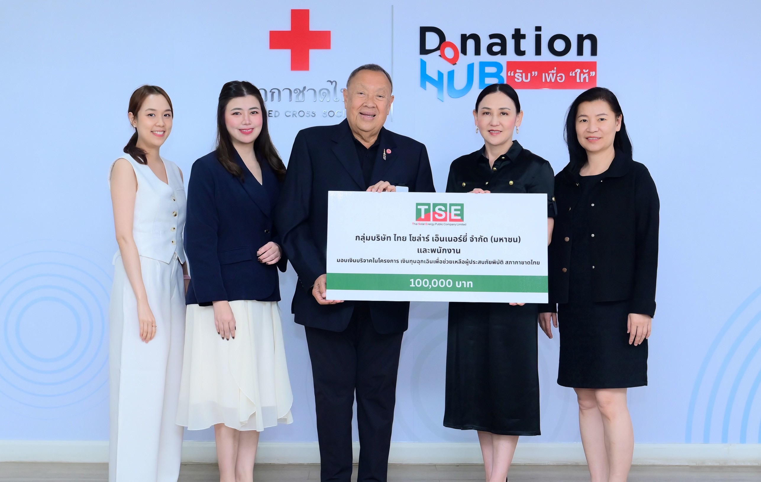 ดร.แคทลีน มาลีนนท์ (ที่ 2 จากขวา) ประธานเจ้าหน้าที่บริหาร บริษัท ไทย โซล่าร์ เอ็นเนอร์ยี่ จำกัด (มหาชน) (TSE) พร้อมด้วยคณะผู้บริหารและพนักงาน ร่วมมอบเงินบริจาคจำนวน 100,000บาท ให้แก่สภากาชาดไทย ในโครงการเงินทุนฉุกเฉินเพื่อช่วยเหลือผู้ประสบภัยพิบัติ เพื่อสนับสนุนการช่วยเหลือผู้ประสบภัยพิบัติต่างๆ ได้อย่างทันท่วงที ลดความสูญเสียทั้งในด้านชีวิตและทรัพย์สิน รวมถึงการเยียวยาและฟื้นฟูพื้นที่หลังเกิดเหตุภัยพิบัติ ทั้งนี้ TSE มุ่งมั่นที่จะยืนเคียงข้างสังคมไทยก้าวผ่านทุกวิกฤตไปด้วยกัน กิจกรรมดังกล่าวจัดขึ้น ณ สภากาชาดไทย เมื่อเร็วๆ นี้